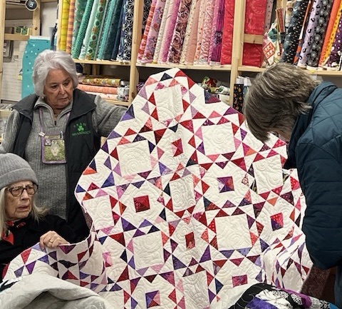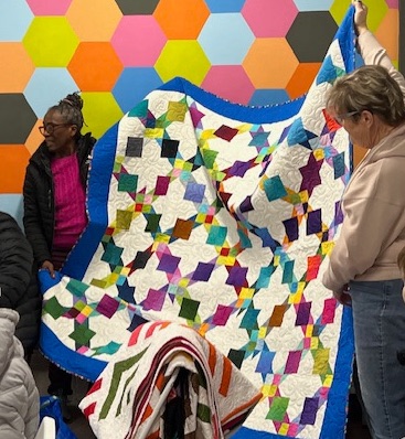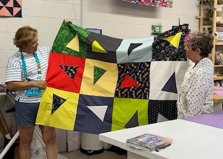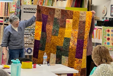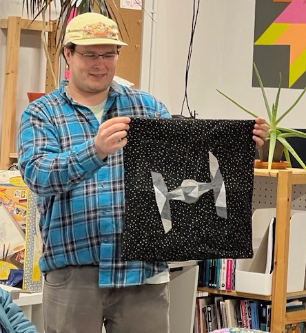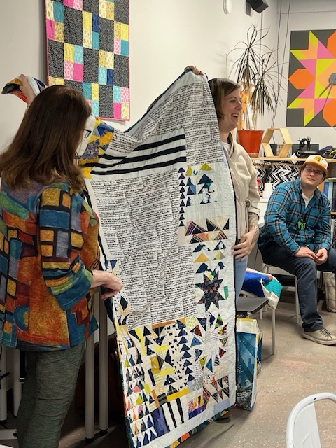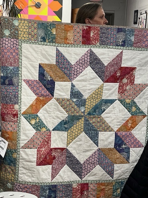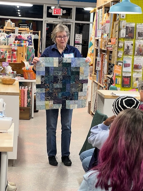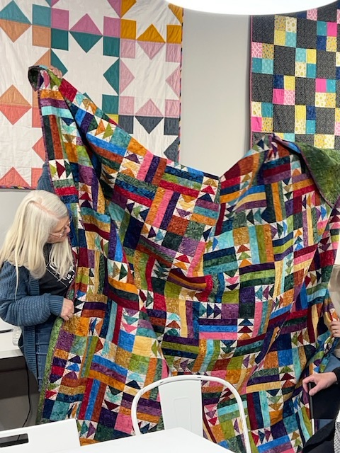 MaryJane gave us all a lesson in graphing out quilt blocks and the ways to resize and incorporate them into your work. So informative. She’s putting her skills to work and creating an improvisational block for a raffle quilt for our next quilt exhibit at the Belmar Arts Council. Yes, you heard that correctly, February 2025 we will be displaying our work at our second exhibit, “Journeys and Destinations” at the BAC. We’ll be sharing, or over sharing, in the months to come.
