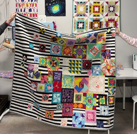 We renewed our annual membership with the worldwide Modern Quilt Guild this past month. It is important to note that when the world shut down for Covid five years ago, we were a struggling guild of twelve members. When I say struggling, I mean that membership was low and so were funds. We could barely make ends meet with rent and insurance and members were leaving, not because they weren’t happy, mostly moving and we rarely got a new member. This year we renewed our membership with an astounding forty members, including the first male member of the group. We could not be happier!! This can be attributed to a number of things including lockdown accounting for a renewed interest in sewing, the generosity of Julia and Patrick of Old Spool Sewing Studio inviting us to use their space for meetings, and most importantly the welcoming spirit of the Jersey Shore Modern Quilt Guild. We take great pride in being a judgement free group of sewers and quilters of all levels where EVERYONE is welcomed and embraced. Congratulations to us!
