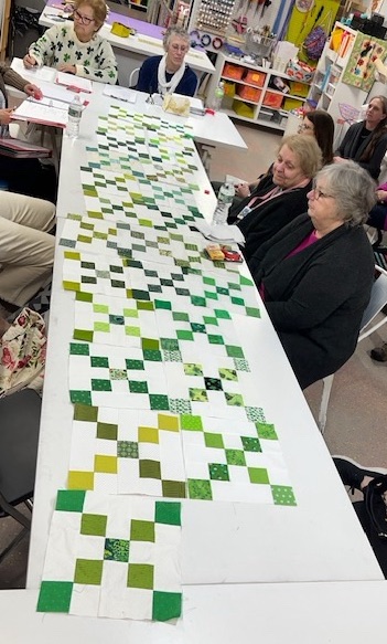 The start of an Irish Chain. (Notice Denise in her Shamrock sweater)