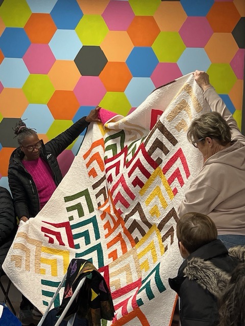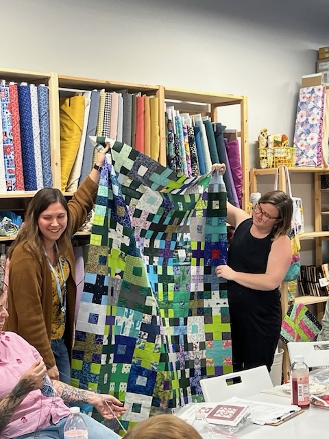 Our guild has grown exponentially post covid, from 12 to currently 45 members and ever growing. There’s a reason for that, there’s actually a few reasons for that, the newfound interest in sewing and quilting after lockdown, the hands down best little sewing studio/quilt shop in Jersey aka Old Spool Sewing Studio, where we gather for our meetings thanks to Julia and Patrick, the owners and most importantly the reputation the Jersey Shore MQG has for its welcoming, judgement free spirit. We truly welcome and embrace everyone, regardless of skill level or craft and we are each other’s biggest cheerleaders.