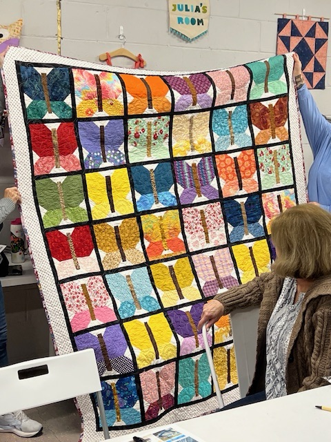 Susan won all the butterfly blocks recently and put this together to add to our community outreach quilts. Thank you