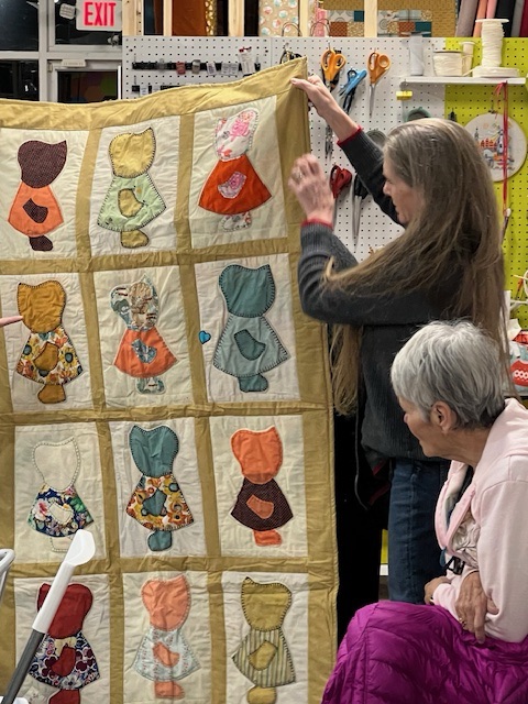 One thing about being in a guild is the wealth of knowledge that we possess and get to share with one another. It has always been a traditional part of the meeting to have an instructional portion and it truly never disappoints. In the beginning of the year our Program Coordinator puts out a survey of basically two questions, what do you want to learn and what are you willing to teach? We’ve covered so many topics ranging from different types of starches to the most complicated of stitching methods and everything in between and there’s always more to learn. In the past two months alone, Brigit gave us some really good insight into ways to visibly mend quilts that have been well loved by their recipient