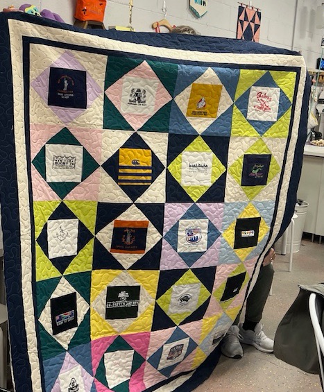 Eileen took all the small logos leftover from a tshirt quilt and created this bonus quilt.