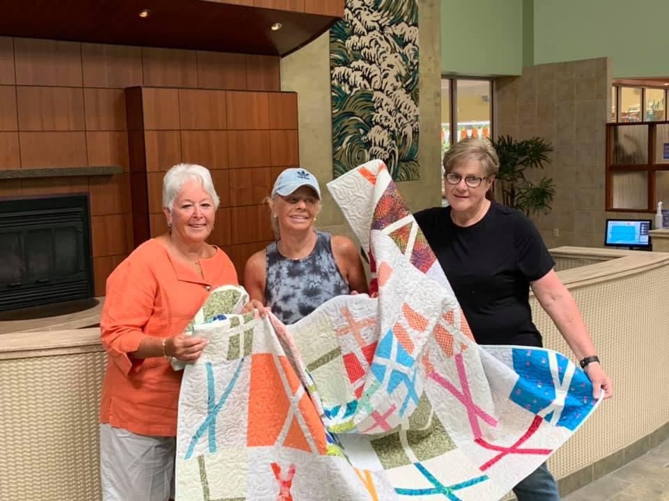 We started this Wonky Cross quilt without a destination in mind and it’s completion just happened to coincide with the fundraiser at Bar Anticipation in Belmar. June reached out to Kathy and she was thrilled at the idea. This is not the first time we’ve worked with Kathy. If you recall we gave our Quilt Con charity quilt, the Shore Bird, to smart home recipient, Scott Nokes through Kathy and Team Shamrock.