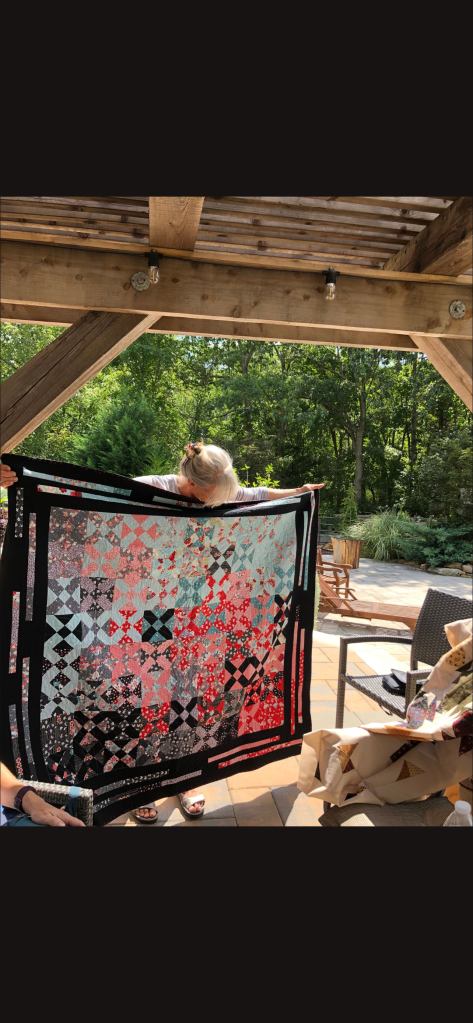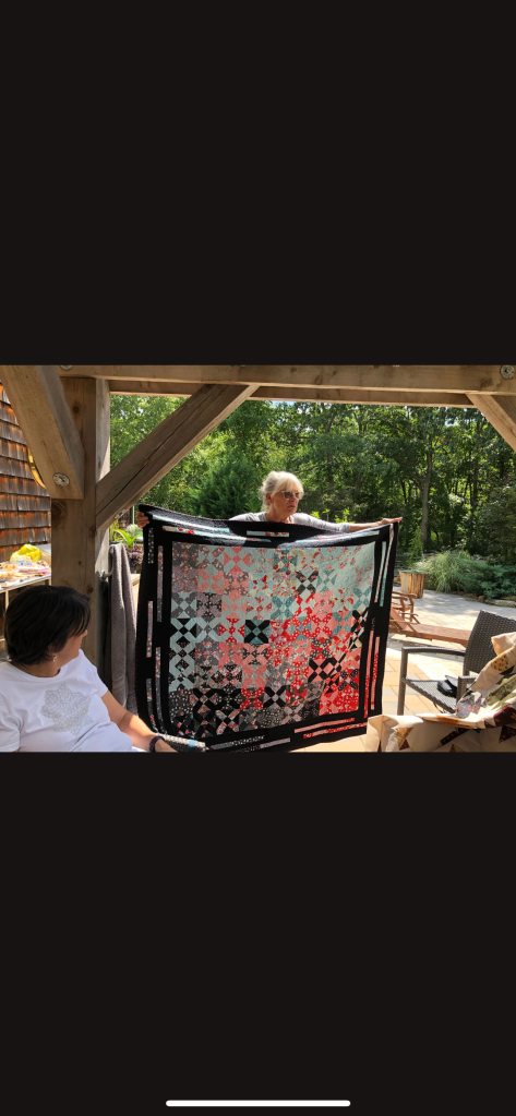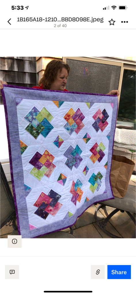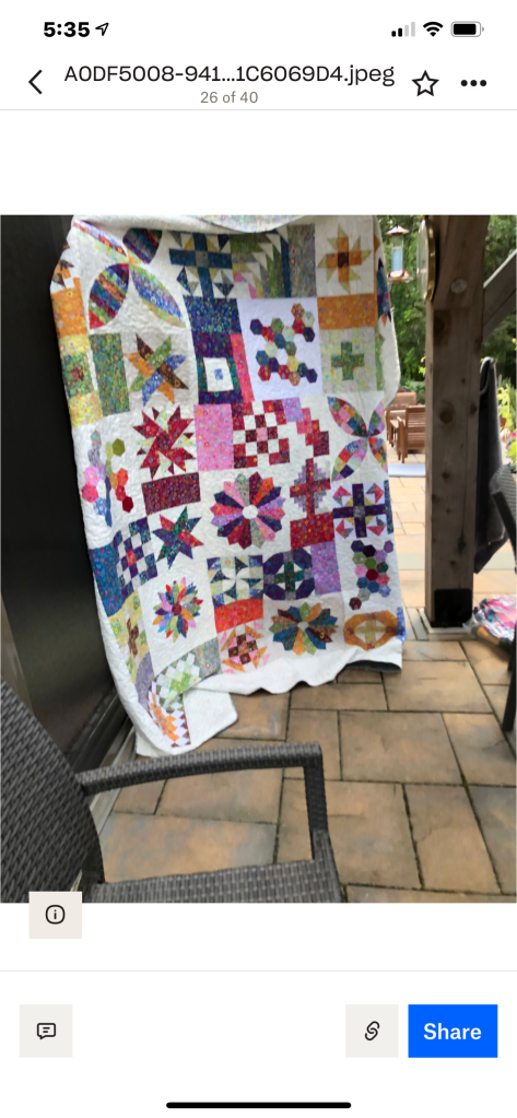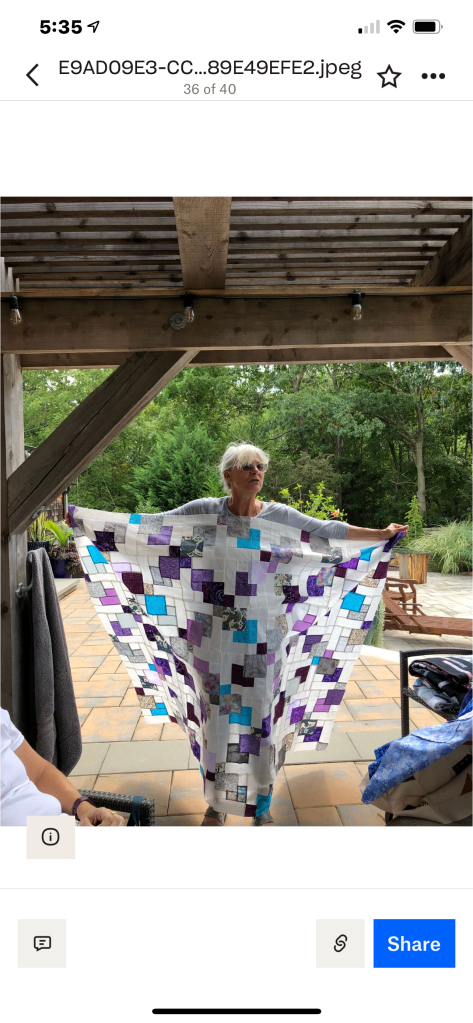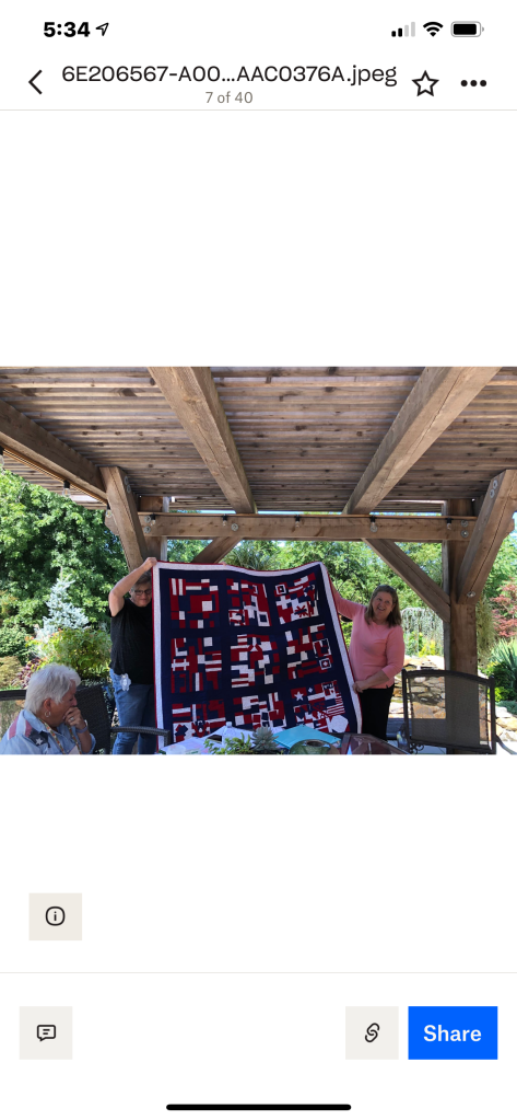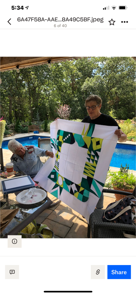 Phew! That was a lot to see, but we haven’t been together in person for a while. It was nice that the members were able to see the completed quilt that started at the Monmouth County library’s Makers Day event, where children created a block from construction paper and our members recreated them in fabric. It will be donated to a local veteran!