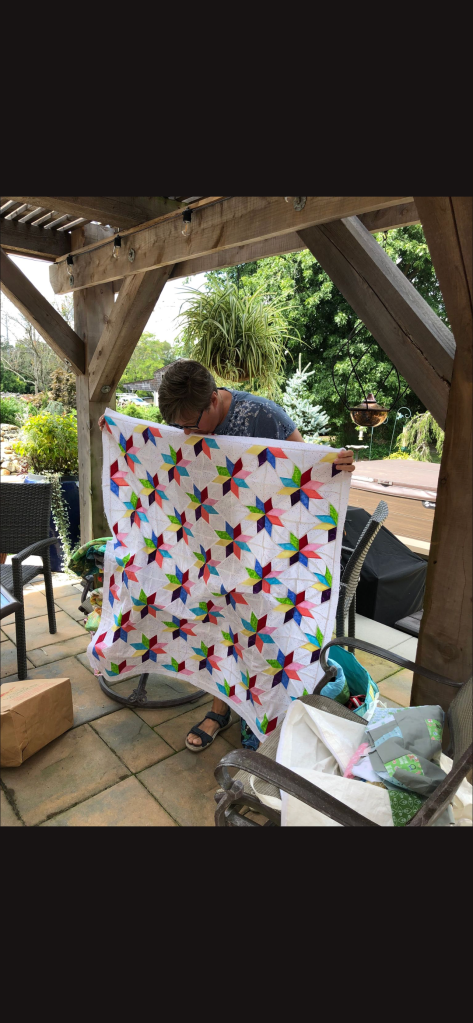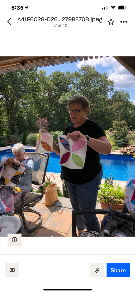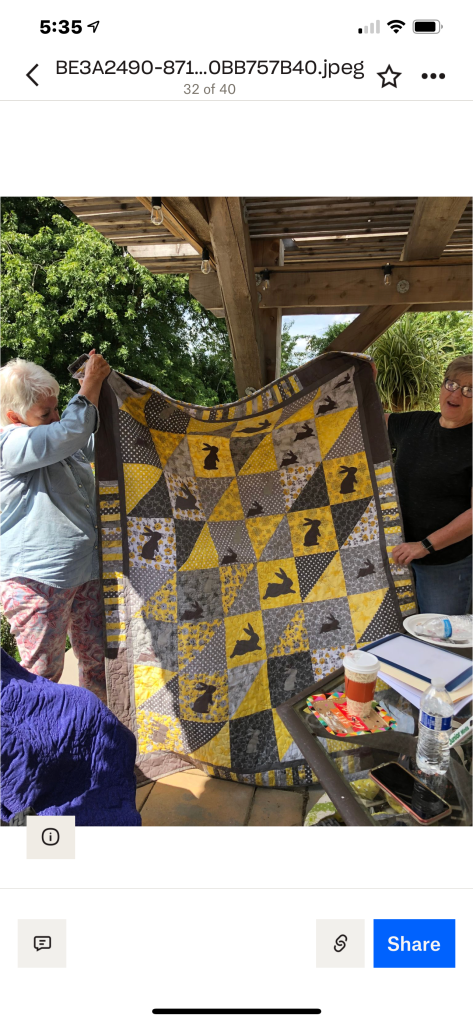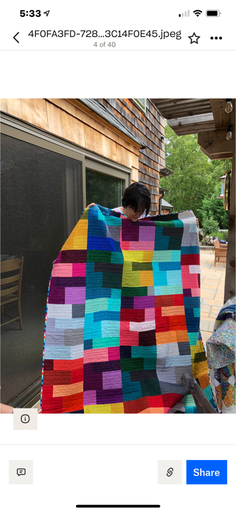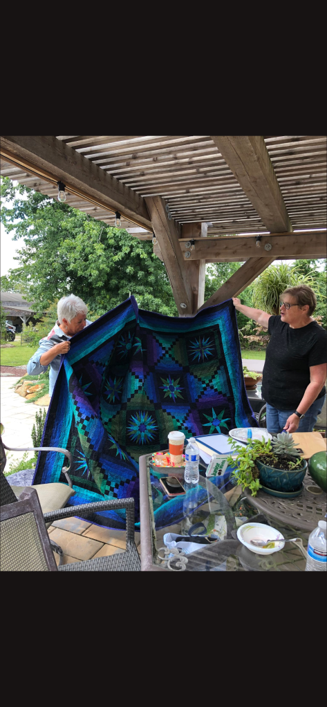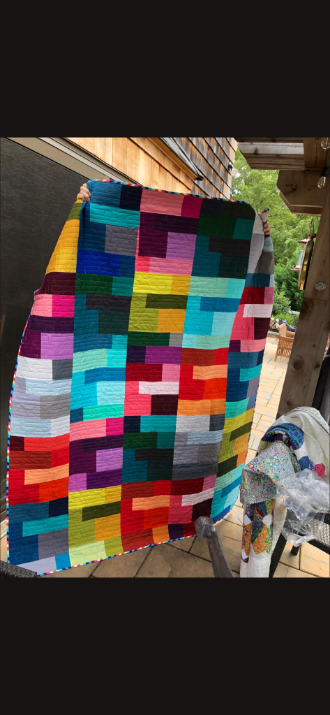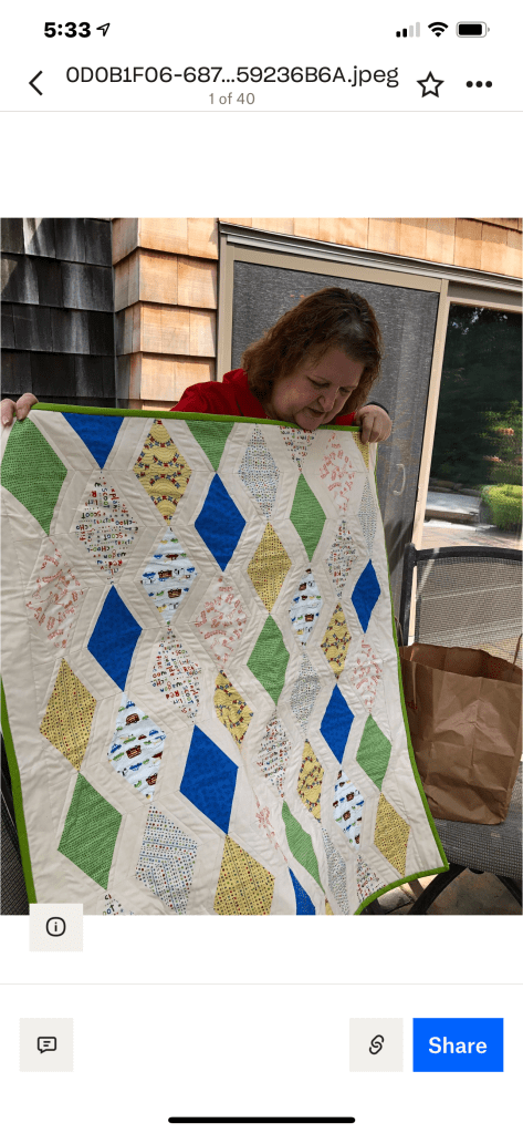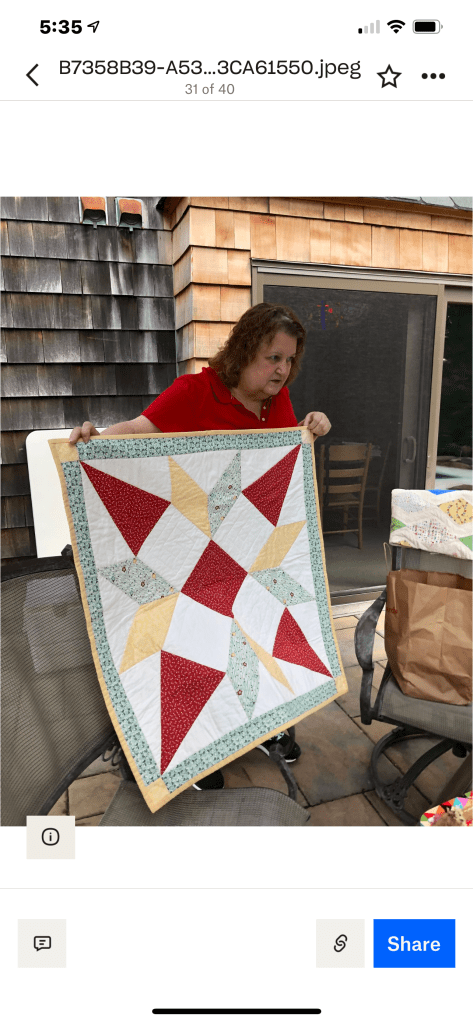 Phew! That was a lot to see, but we haven’t been together in person for a while. It was nice that the members were able to see the completed quilt that started at the Monmouth County library’s Makers Day event, where children created a block from construction paper and our members recreated them in fabric. It will be donated to a local veteran!