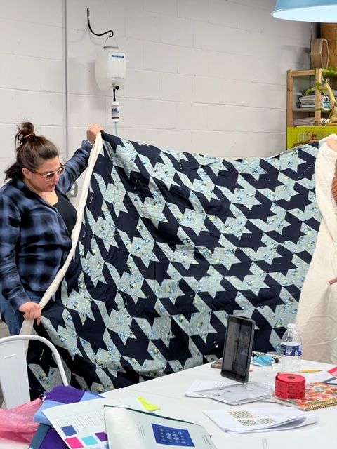 We’ve got some fun new things happening in the coming months. Block lottos, fabric challenges, sew-ins and bag making. I’m particularly excited for the sew-in with Julia’s students, making toiletry bags for a local organization. That will be a fun day and for a good cause. We’ve also got everyone making blocks for our donation quilt for the next “smart home” recipient of Team Shamrock/Tunnel to Towers. And Brandy received quite a few blocks for the donation quilt she’s making for a family who lost their home and pets in a fire.