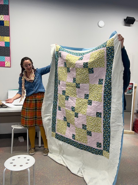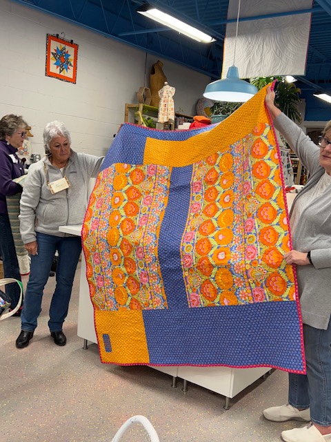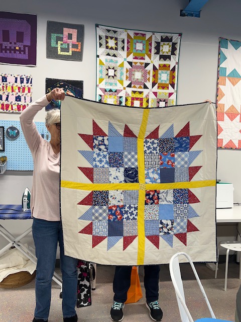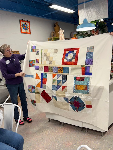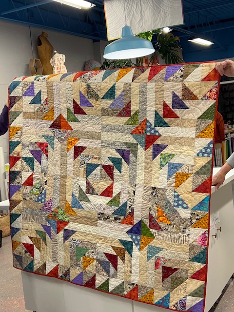 Julia’s husband Patrick made this beauty!! It reminds me of a take on an Irish chain. We can’t get Patrick to join us at a meeting 🤔 but we’d sure love to have him!!!