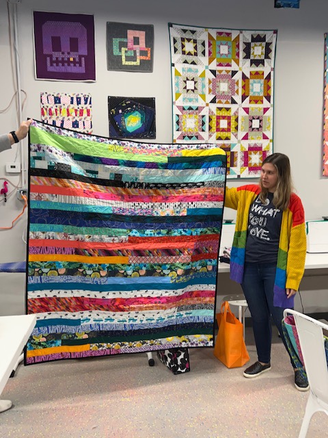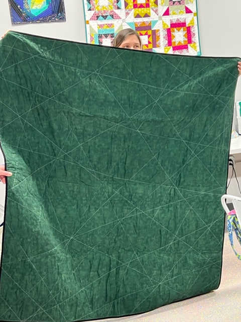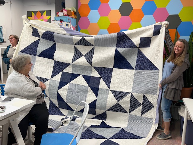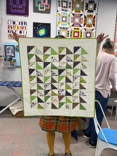 Debbie Loeb finished two quilts she’ll be donating to our Community Outreach efforts, a super cute take on a modern bear paw and a baby quilt using leftover half square triangles from another project. Thanks Deb!!