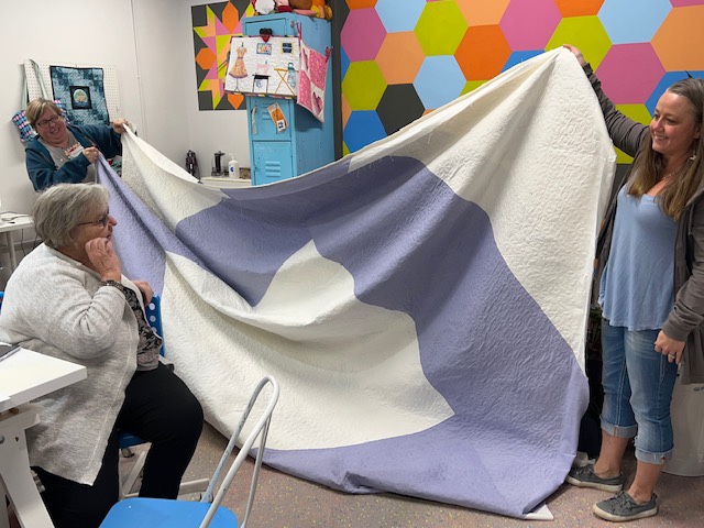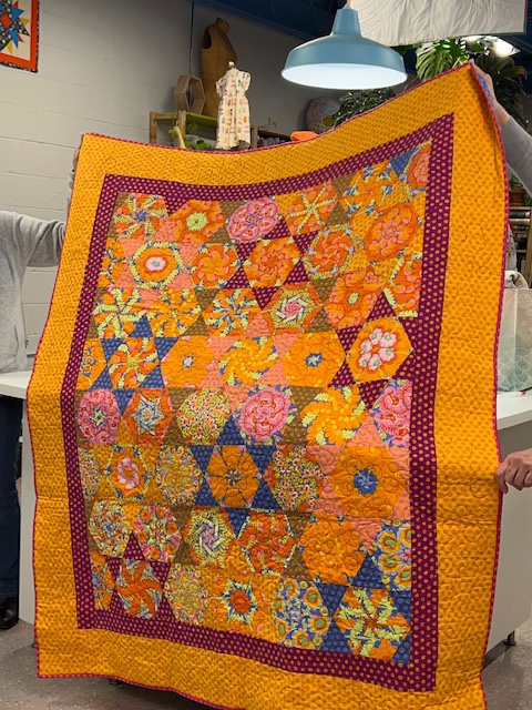 Gotta love Brandy, this has been a work in progress since the Queen Bee days of when we used to meet in Ocean Grove. This quilt is 120” square, anyone want to hand bind this baby?!?!