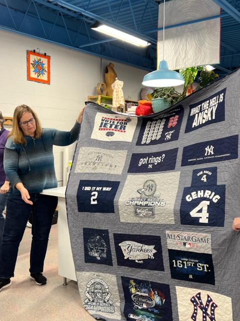 Our guest, Ann, showed us this lovely, non traditional tshirt quilt she made for her son.