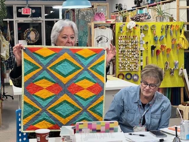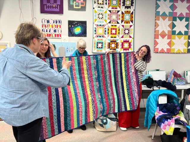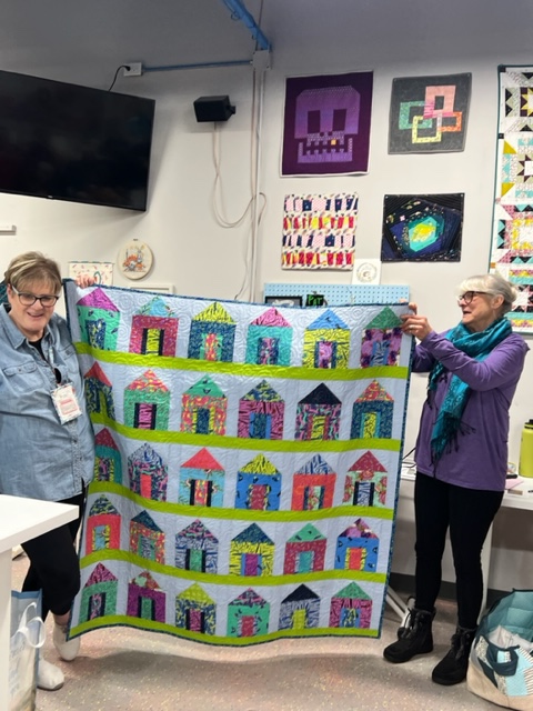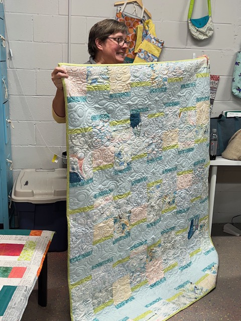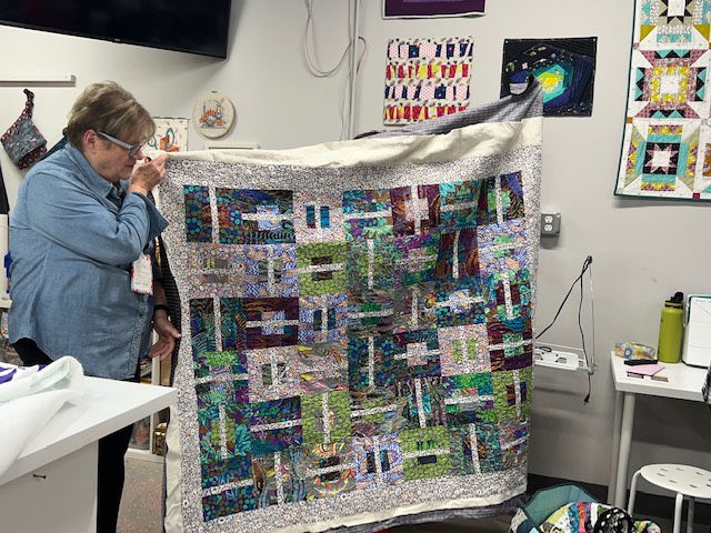 Brooke did show us one of her completed jelly roll quilts and has organized a jelly roll sew-in for March 25th. She’ll be teaching the group her methods for making these.