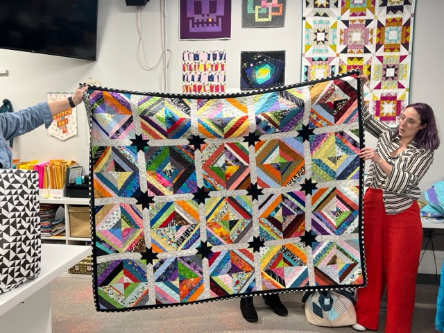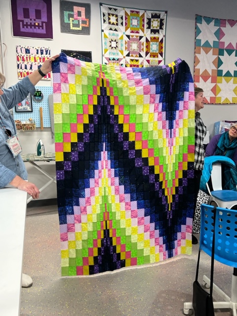 This bargello beauty is made by Dev H, only a few days earlier she was in Old Spool purchasing 12 different fabrics for this. It’s gorgeous and inspired by the northern lights.
