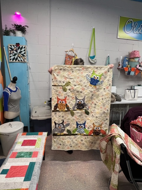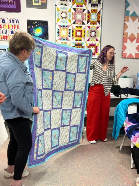 Here we have Julia showing off a quilt made by her husband Patrick! Awesome!!