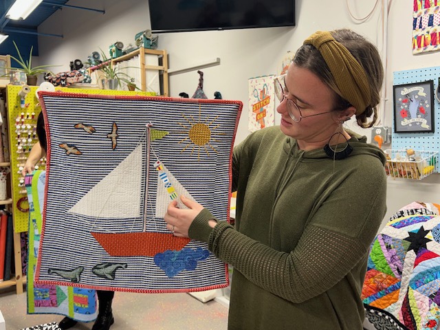 Brooke gave us a sneak peek at her “Stay at Home Quilt” which will be featured in our exhibit. It holds some beautiful meanings for her, isn’t it great!